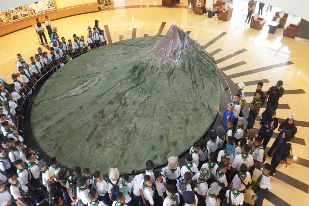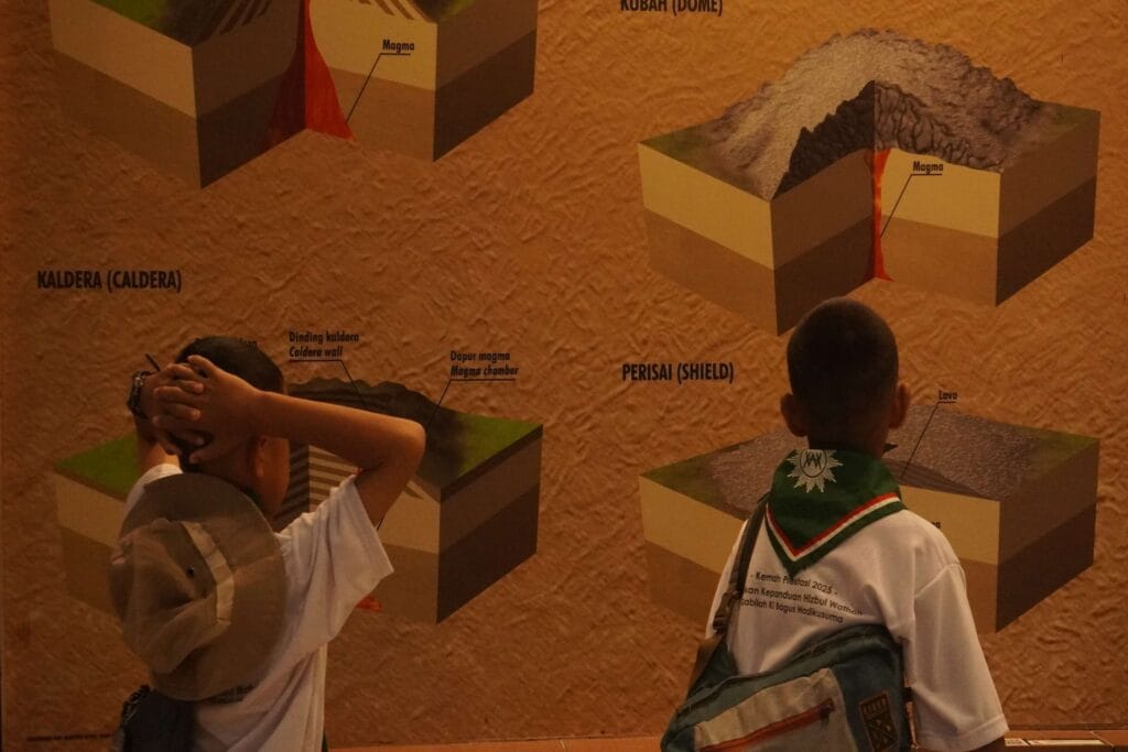 Selepas berkeliling mereka juga menyaksikan film dokumenter yang membahas terkait sejarah Gunungapi Merapi.
