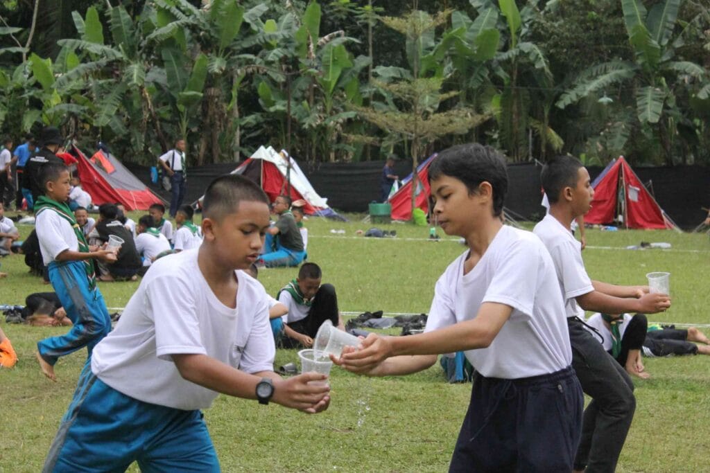 Lomba ini memaksa peserta untuk basah-basahan. Setiap regu berlomba mengisi gelas dengan air, regu dengan total air terbanyak menjadi pemenangnya. Estafet dilakukan menggunakan gelas plastik. Satu orang bertugas mengambil air dari ember, sementara sisanya mengestafetkan air melalui gelas.