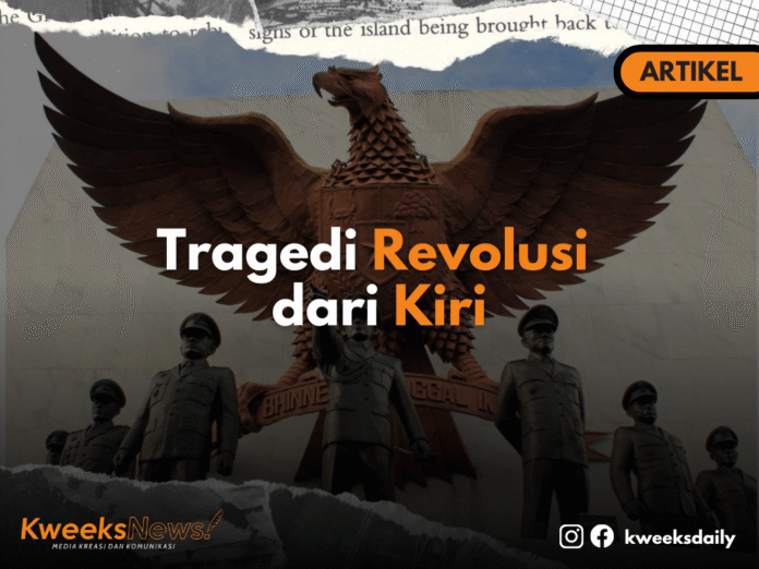 Pertarungan pemikiran adalah sesuatu yang nyaris tak terhindarkan bagi bangsa-bangsa yang baru mencicipi kebebasan dan kemerdekaan. Di Indonesia, ideologi-ideologi besar seperti nasionalisme, komunisme, dan Islamisme saling bersaing untuk memengaruhi arah masa depan bangsa. Namun, banyaknya perbedaan ini tidak dikelola dengan bijak. Alih-alih membangun dialog, masing-masing kelompok justru memperkuat batas dan eksklusivitas mereka sendiri. Akibatnya, konflik pun menjadi sesuatu yang tak terelakkan. G30S/PKI menjadi simbol meledaknya ketegangan tersebut dan menandai perubahan besar dalam lanskap politik Indonesia. Revolusi yang diimpikan menjadi jalan keluar dari ketimpangan justru berubah menjadi tragedi. Korban jatuh dari berbagai pihak, dan pemerintahan pun bergeser dari spektrum kiri menuju dominasi kekuatan kanan yang diwakili militer.