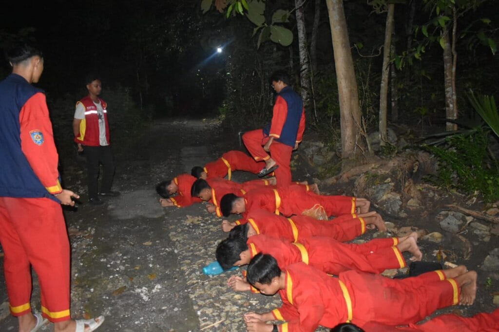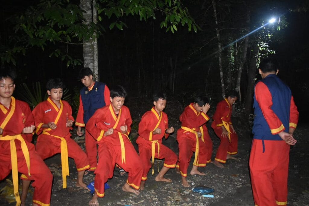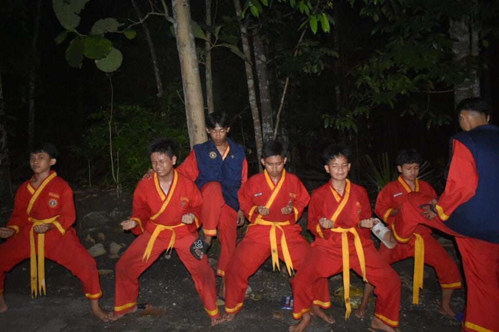 Ditengah heningnya malam (8/2/2025), para peserta UKT Tingkat 2 Tapak Suci dengan seragam Tapak Sucinya berkelana, menyusuri area perkemahan.